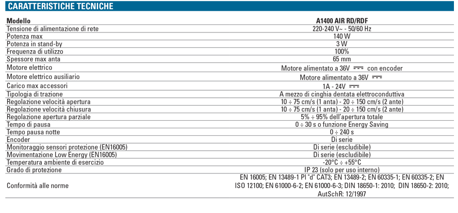 CARATTERISTICHE FAAC A1400 AIR RD/RDF