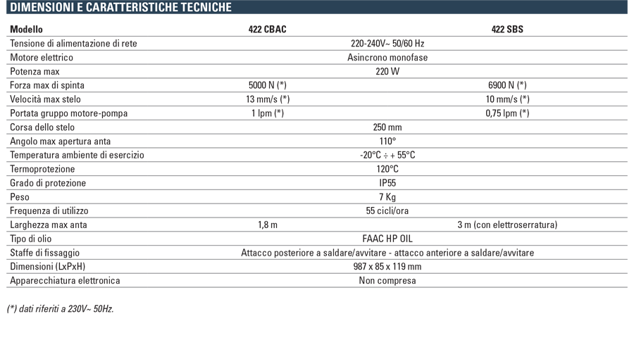 Versione irreversibile in apertura CBAC (con blocco in chiusura) e reversibile SBS (senza blocco slow).