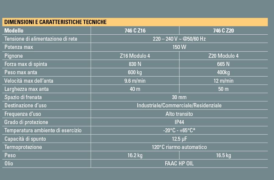 CARATTERISTICHE FAAC 746 C